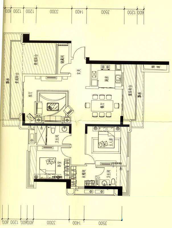 • 依雲天匯B01戶型 3室麵積155.00平米