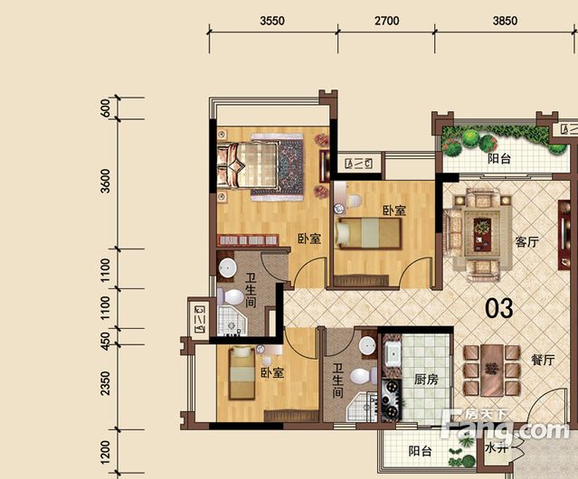 • 依雲天匯B01戶型 3室麵積155.00平米