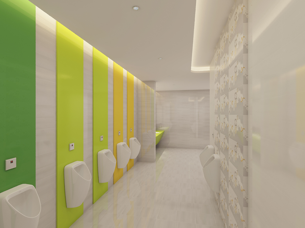 衛生間的設計理念也是營造年輕活力的空間體驗感,色彩搭配鮮明,明暗區域分明。鋪貼的是新款的噴墨瓷片,簡約不簡單。