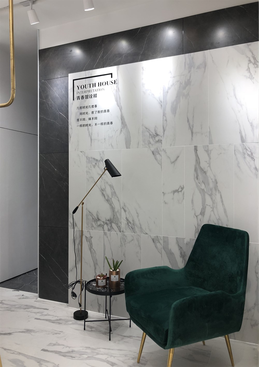 由緞光釉卡拉卡白與保加利亞灰搭配鋪設的牆麵,一深一淺突出牆麵的層次感和立體感,金屬軟裝與卡拉卡白瓷磚搭配出輕奢的空間體驗感,近兩年很多網紅餐廳和咖啡廳都愛這麽91APP免费看片。
