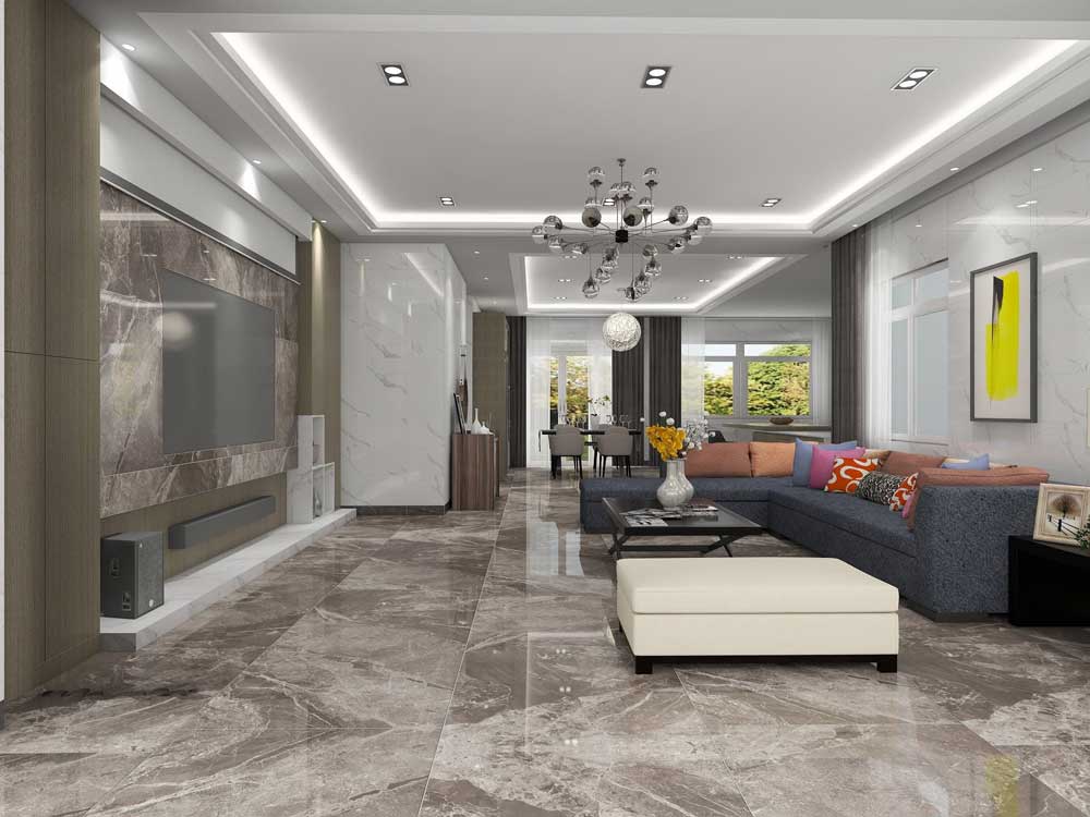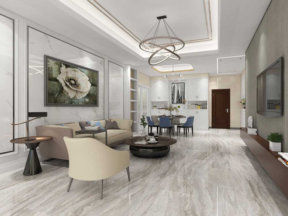 大戶型客廳在軟裝和風格選擇上有很大的空間,吊頂造型設計相對簡潔,隱藏式的燈帶能夠渲染出更加溫馨的家居氛圍,再搭配數盞筒燈及水晶燈的點綴,營造出時尚大氣的視覺效果。現代風格的電視背景牆多會采用瓷磚、大理石來裝飾,布藝沙發也是現代風格的絕佳搭配,再配合大小合適的茶幾,簡潔實用又美觀大方。