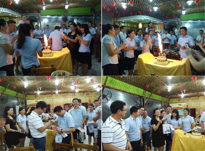 在隨後的上半年慶功晚宴上,更是熱鬧非凡。按照一貫的傳統,晚宴上還為本月的壽星舉行了生日宴會,並由董事長親自為壽星們送上生日禮物及親筆書寫的生日賀卡。