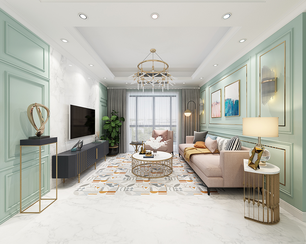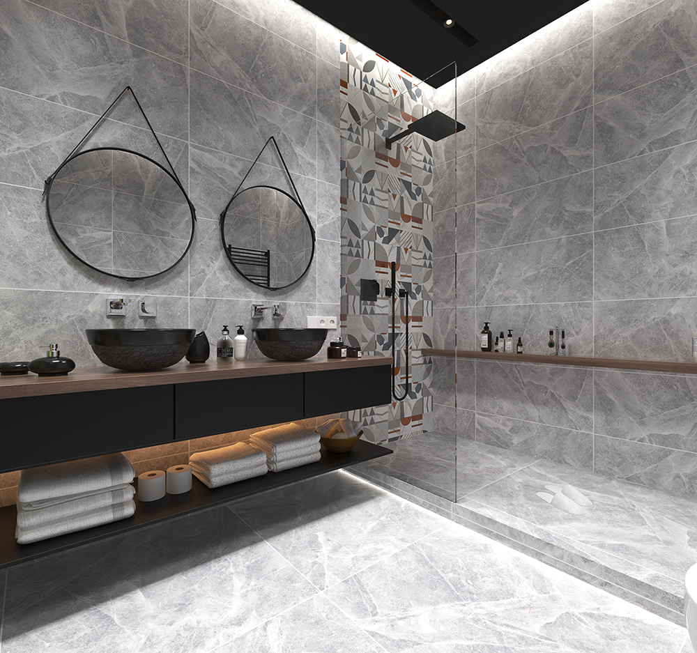 暖灰色時尚溫馨,少量白色紋理錯落有致深度還原天然石材紋理,勾勒出有格調的空間感。