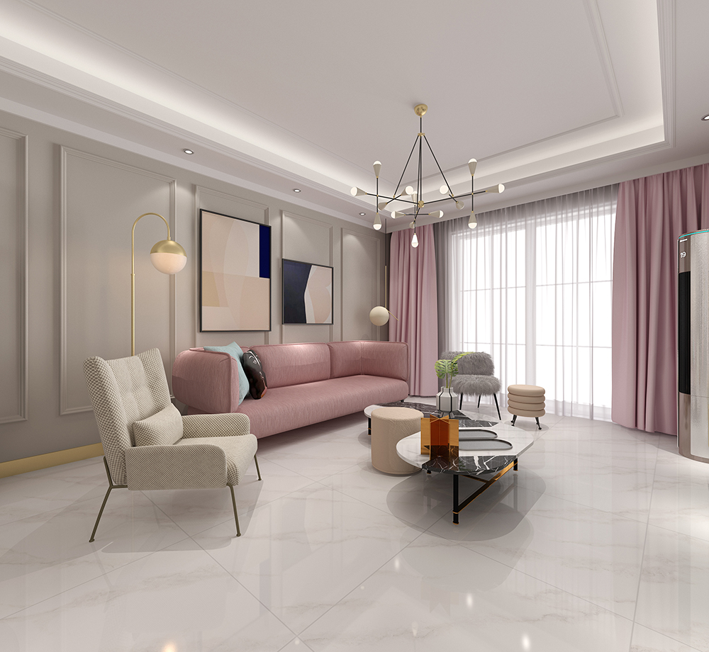 米黃的地磚與粉色碰撞出溫馨、愉快的氣氛
