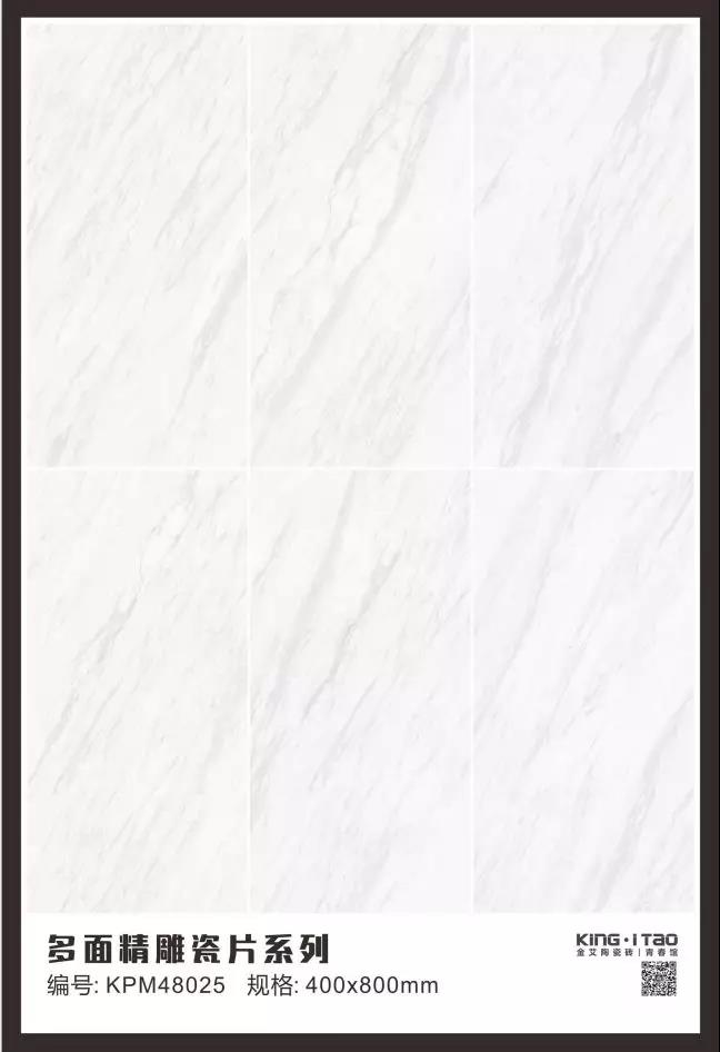 KPM48025白色飄逸的流紋作為衛生間的牆麵非常幹淨素潔,400*800的規格顯得大氣美觀,相對大磚切割上牆更有性價比,高光亮麵讓你的衛生間更顯亮堂大方。洗手台用91手机看片你懂的KYP918001切割當台麵,900*1800規格以及大理石紋理更顯檔次。