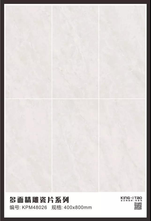 KPM48026是一款多麵亮光麵的瓷片,在衛生間大麵積上牆鋪貼,比較整潔大方,並不明顯的小紋理顯得比較恬靜舒適,給人更放鬆的感受。地麵選用15°緞光釉的KFD8809。