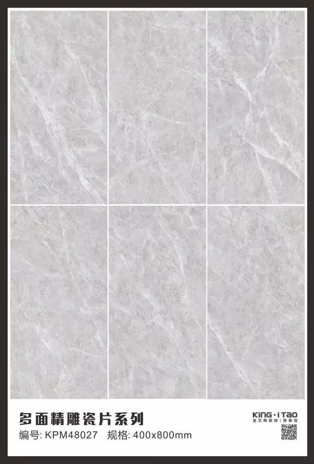 KPM48027是一款400*800規格噴墨亮光麵的瓷片,高清晰多麵文件,讓你的衛生間牆麵不再單調,淺灰色主調加大理石流紋,營造出時尚而優雅的空間美感。地麵選用了15°緞光釉的KFD8813,更大更深的灰色大理石紋理讓空間沉穩,設計師別出心裁的把地磚切成了400*800規格,和牆麵相映成趣,渾然一體。