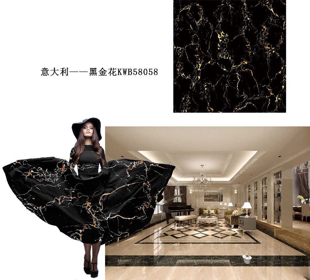 取材於非常名貴的西班牙黑白根大理石,黑白交織,紋理錯落有致,在世界上一直被尊崇為經典的石材,其渾厚的黑色光澤,散發出誘人神秘的奢華氣氛。無論是在東方,還是西方的建築文化中,它都占據著很高的地位,一直風靡至今。