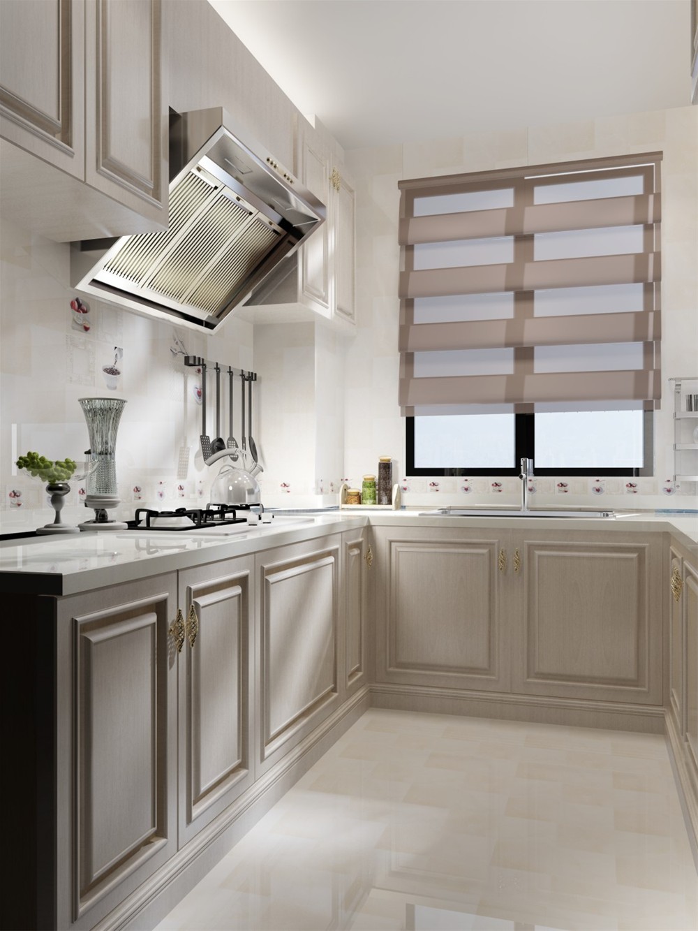 搭配技巧:與開放式、餐廚合一的西式廚房不同,中式廚房則完全采用了密閉式的設計,加上馬力強勁的抽油煙機,保證廚房的油煙順利排向室外,而不會在家居空間裏滯留。中式廚房以簡潔為美,注重櫥櫃的收納功能,除了實用性的烹飪用具外,廚房內也比較少擺放一些精致的裝飾品。