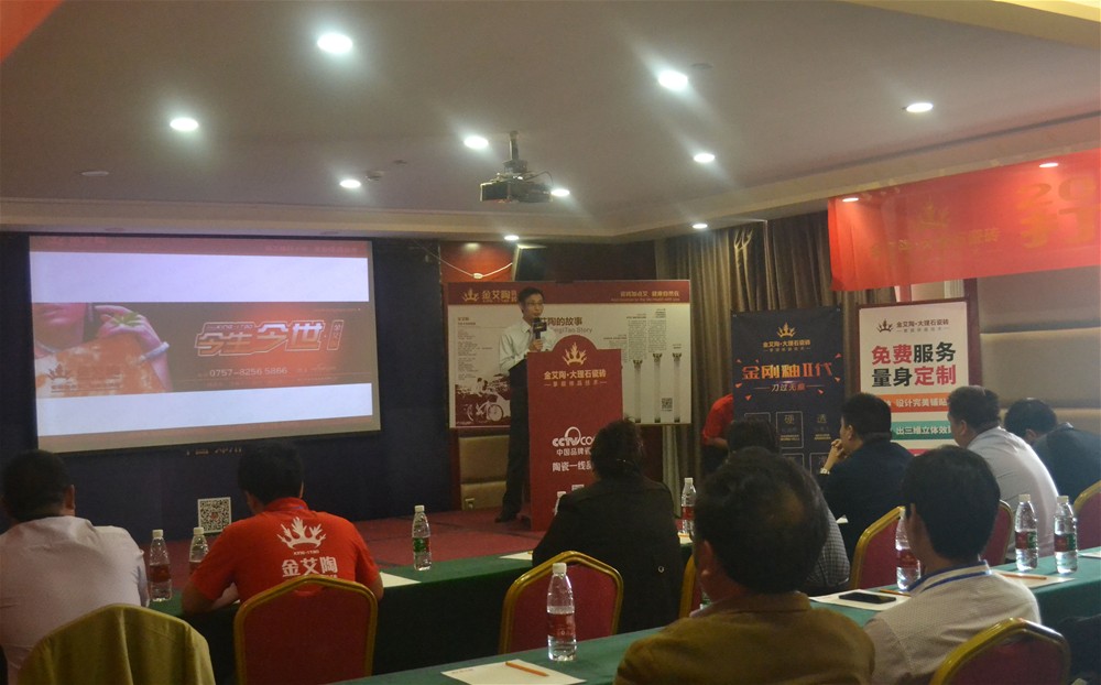 91看片的免费的网站陶營銷總經理羅勝向經銷商介紹新品