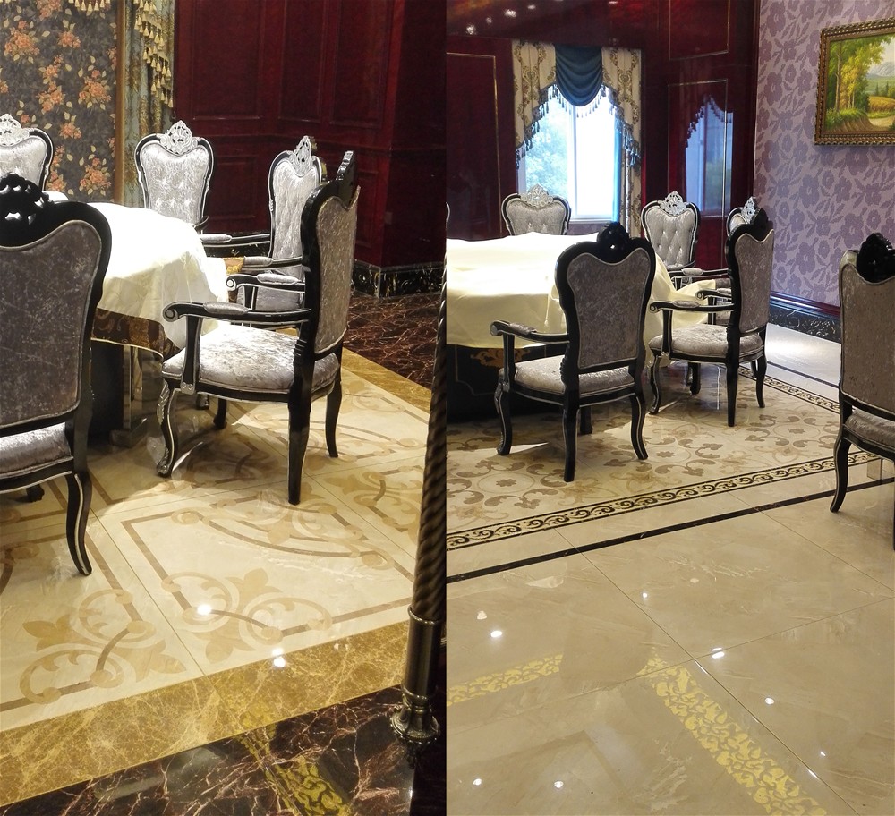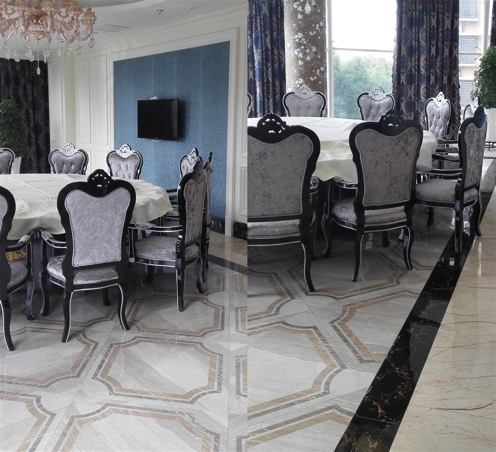 以91看片的免费的网站陶愛丁堡係列拚花KYP8055H、KYP8062H、KYP8069H作為主要裝飾材料,再加上愛特大理石黑金花KYB8017與金黃天龍KYP8085的裝飾和襯托,使地麵的瓷磚更加富於變化,視角效果更加豐富。周圍花紋的襯托,地麵整體成“淡黃與黑”搭配的空間效果,給人一種高端華麗的感覺,令人賞心悅目。