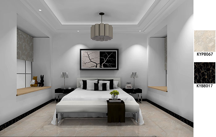 吊燈造型如萬花筒,即實用又易於打理。床尾設置了一個小型置物台,上麵擺放的一株綠色植物,讓家居空間生機勃勃。地麵鋪貼陶瓷一線91看片在线观看免费91看片的免费的网站陶石紋瓷磚,搭配大理石瓷磚黑金花,將整個空間打造成一個舒適、靜享生活的私人角落。