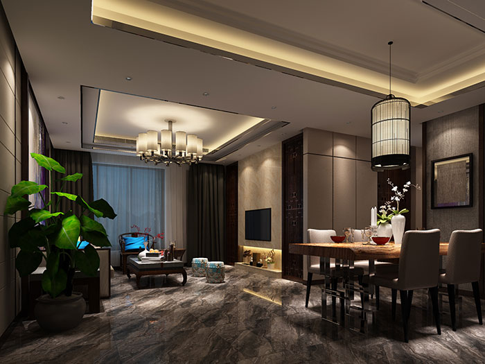 設計師僅用簡潔線條已勾勒出吊頂的層次感,客廳和餐廳的區域被巧妙地區分出來。