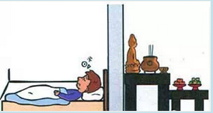 隻有小廟的廟公才會睡在神像的後麵或神桌下麵。一般人既不是廟公,也不是靈媒,千萬不可如此睡。