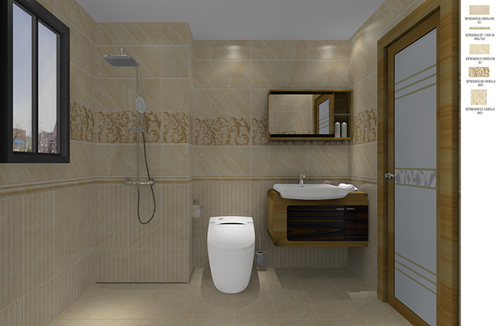 浴室的瓷磚鋪貼講究搭配的整體性,下牆磚在與上牆色調保持一致的情況下,更是給人一種3D立體柱狀的感覺,仔細看看有木有這種感覺?