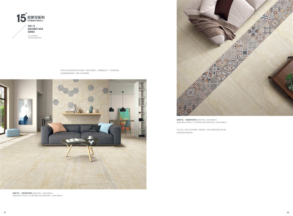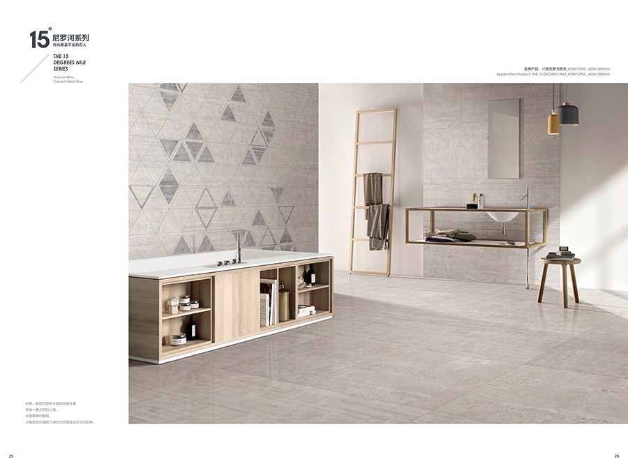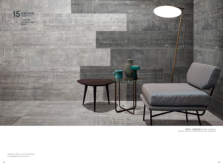 15度尼羅河,如夜幕下的尼羅河流,一路向前,偶爾也隨性地流淌,以自己的風華凝聚時代的靈魂給予世人。追溯千百年前的智慧,設計師將尼羅河的蜿蜒流長帶入產品的抽象表現中,在傳承中沉浸強烈的自然氣息,風格獨特而彰顯藝術的閑逸,傳承精髓而散發著浪漫風情,無論是大麵積鋪貼,還是與其他元素混搭, 都在相得益彰中凸顯濃鬱的文化韻味。