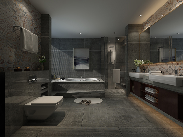 牆麵與地麵保持一致,用別具一格的現代仿古磚鋪貼,烘托簡約、時尚的品味。