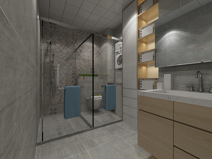 淩而不亂,給原本四四方方的空間,帶來更多立體感,配合現代仿古磚本身的質感,讓人更是驚喜。