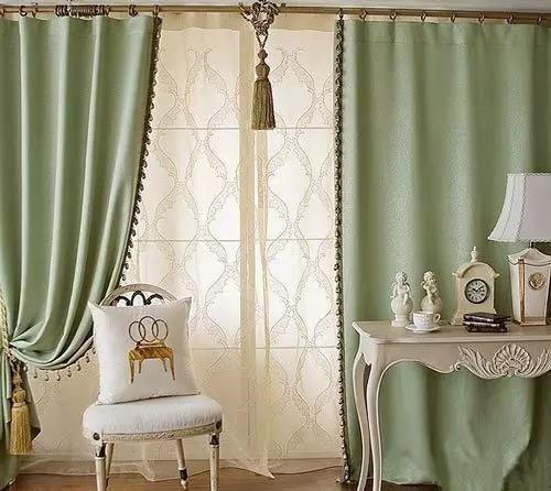 比如下圖就是根據天花板的顏色,然後選擇了白色的窗簾,在綠色的牆麵中顯得