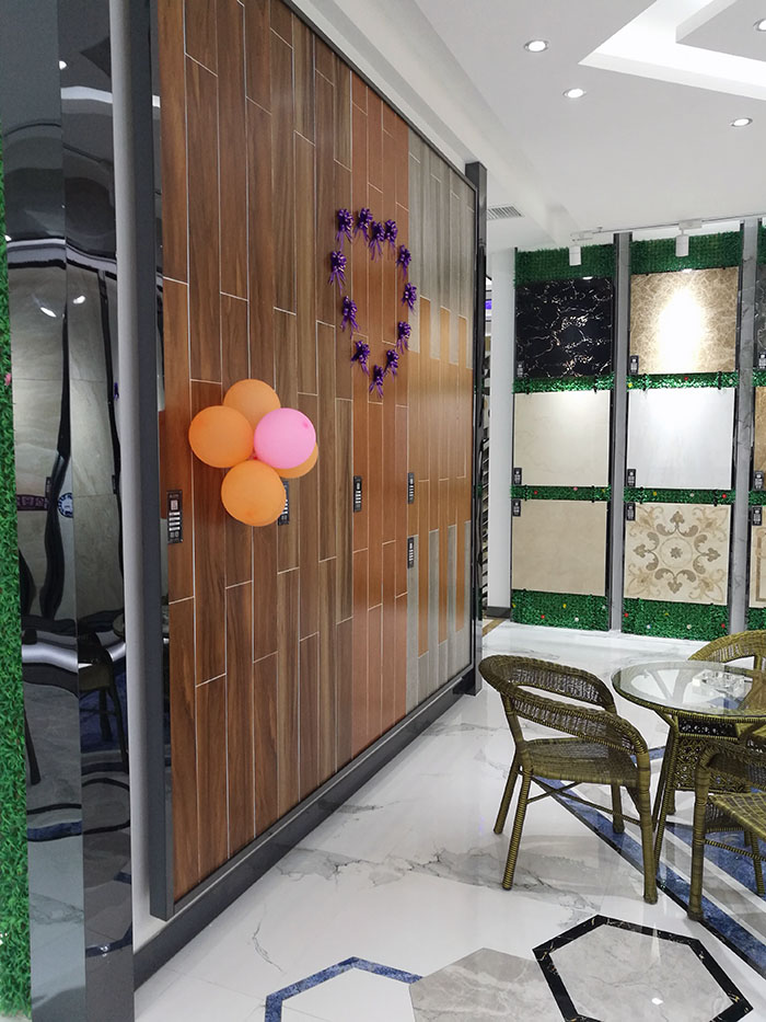展廳內根據產品不同係列、不同風格分成了多個產品展示區域,充分體現了91看片的免费的网站陶瓷磚產品體係的多樣化,獨特的展架設計將實用性與美觀性完美結合,摒棄了單調無味,讓消費者們能夠近距離接觸產品,了解產品。