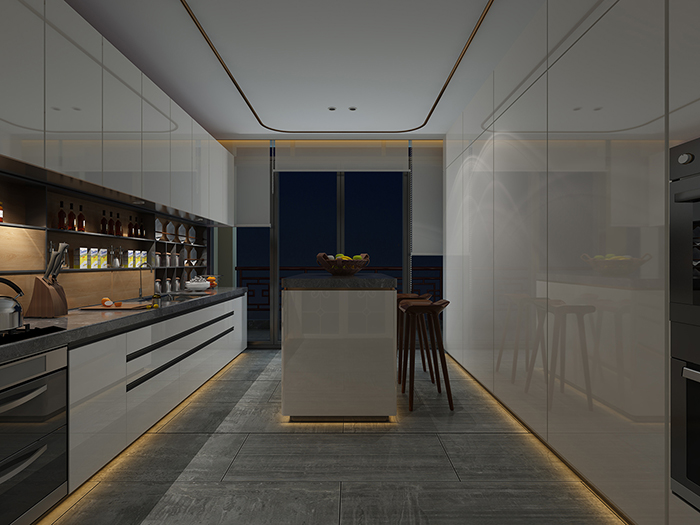 嵌入式設計讓空間得到極致的利用,大大減輕了視覺負擔,櫥櫃表麵又增加了錯落有致的儲物格,產生趣味十足的視覺效果。