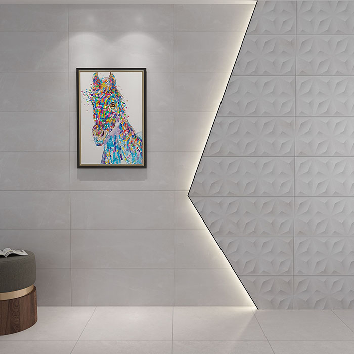 鋪貼牆麵磚時需要注意每片瓷磚之間的水平、直角,片與片之間需要維持平整;其次鋪貼後收邊條處理需要確認瓷磚與收邊的高低點一級平整度。