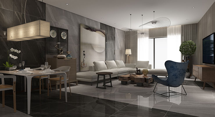 灰色沉靜內斂的氣質能烘托客廳的氛圍,